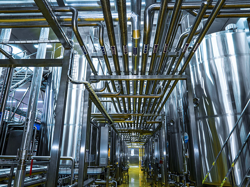 القطع واللحام (لحام قوس الأرجون) والتلميع والتخليل الحمضي والتخميل واختبار الضغط وتصميم تخطيط خطوط الأنابيب وبناء خطوط أنابيب من الفولاذ المقاوم للصدأ الصالحة للأكل.